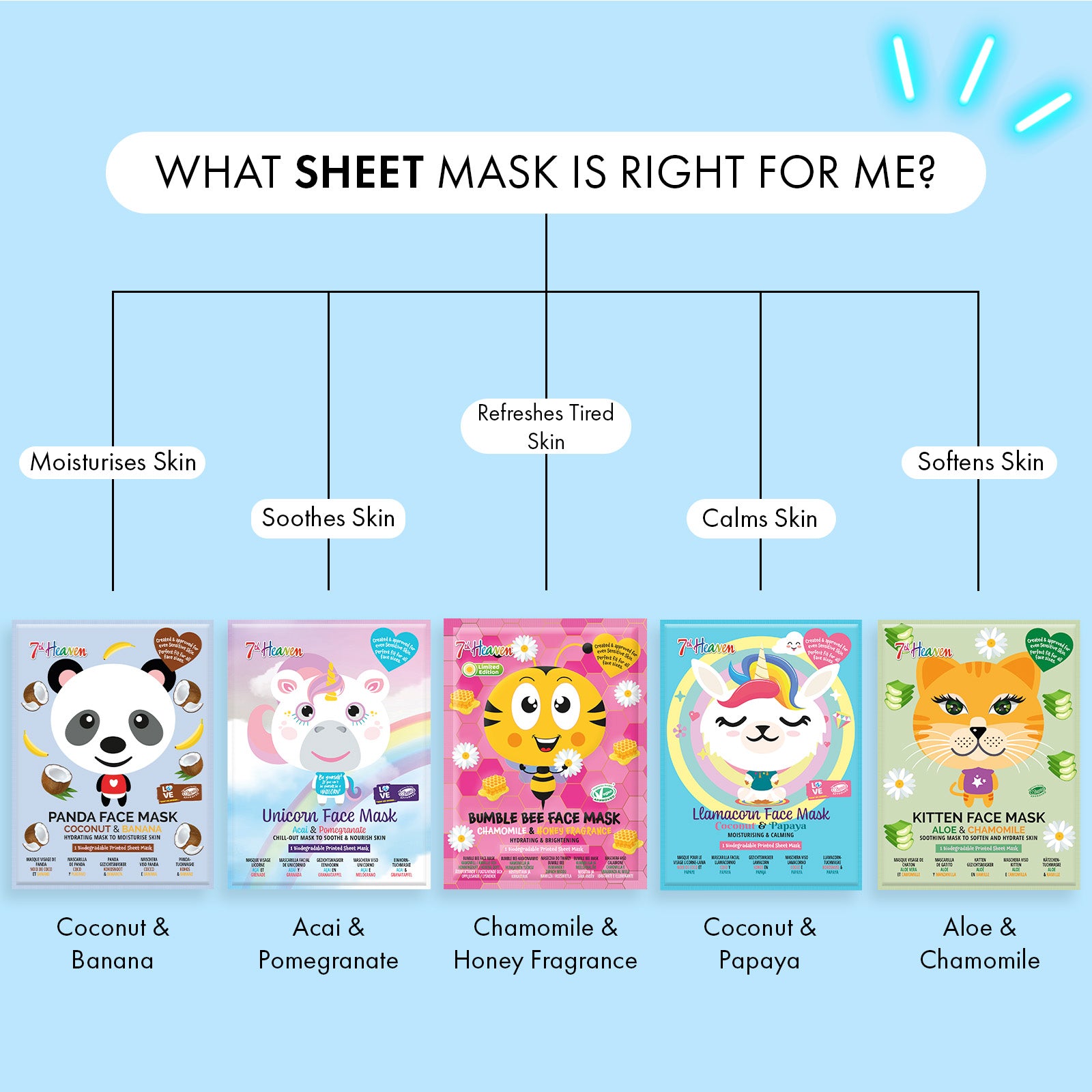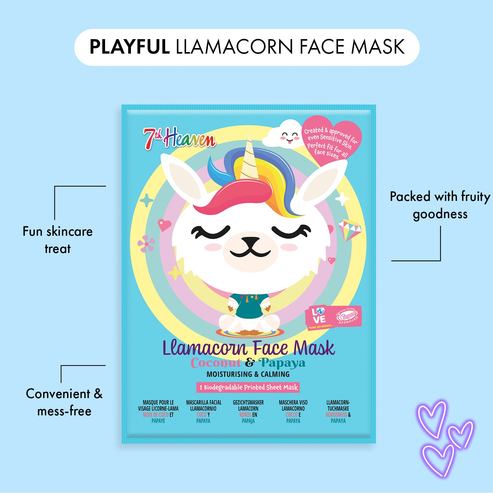 7th Heaven Llamacorn Face Mask with Coconut & Papaya - Moisturises & Calms, Pack of 4